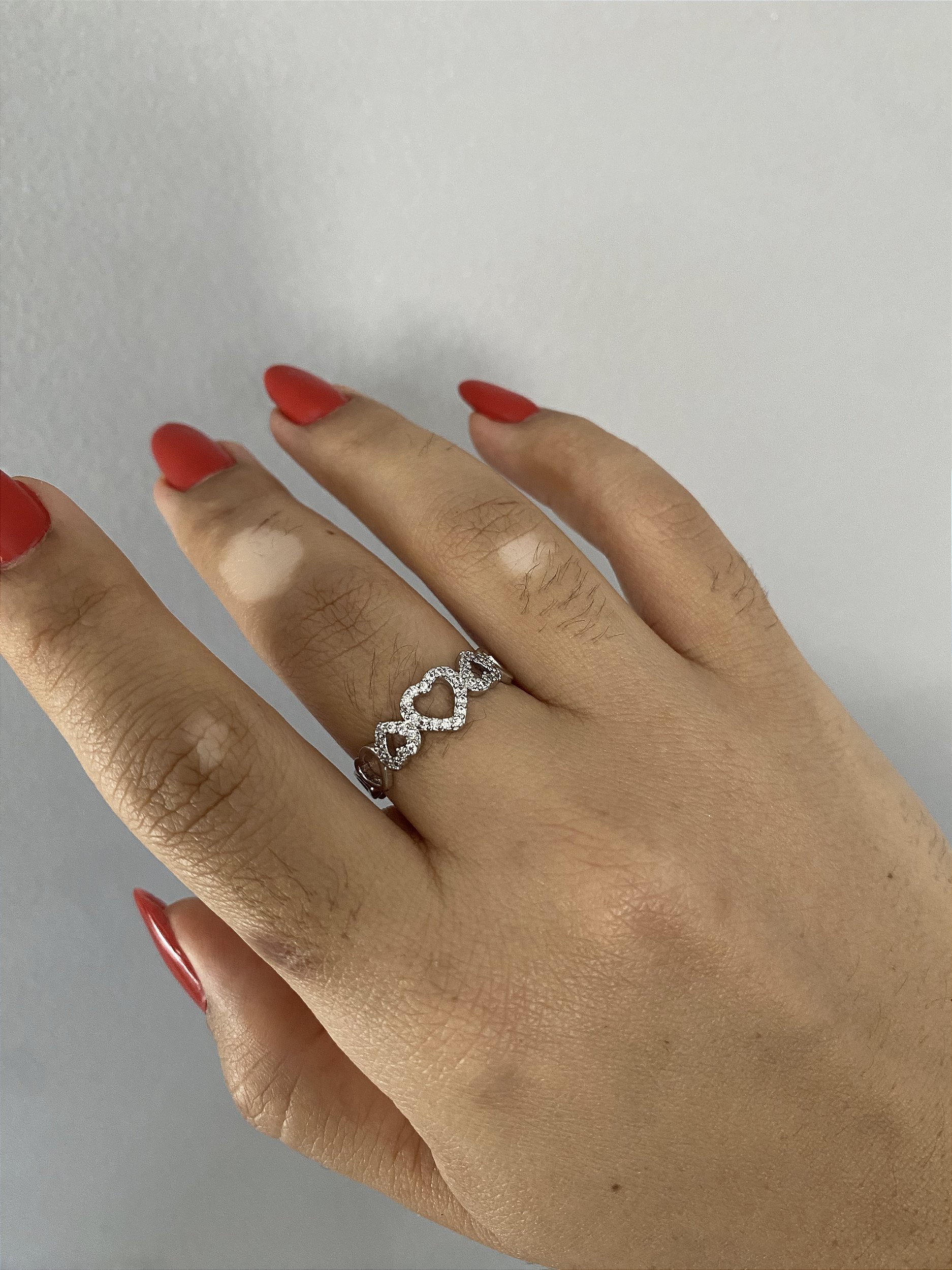 ANEL CORAÇÕES PRATEADO- TAM 18