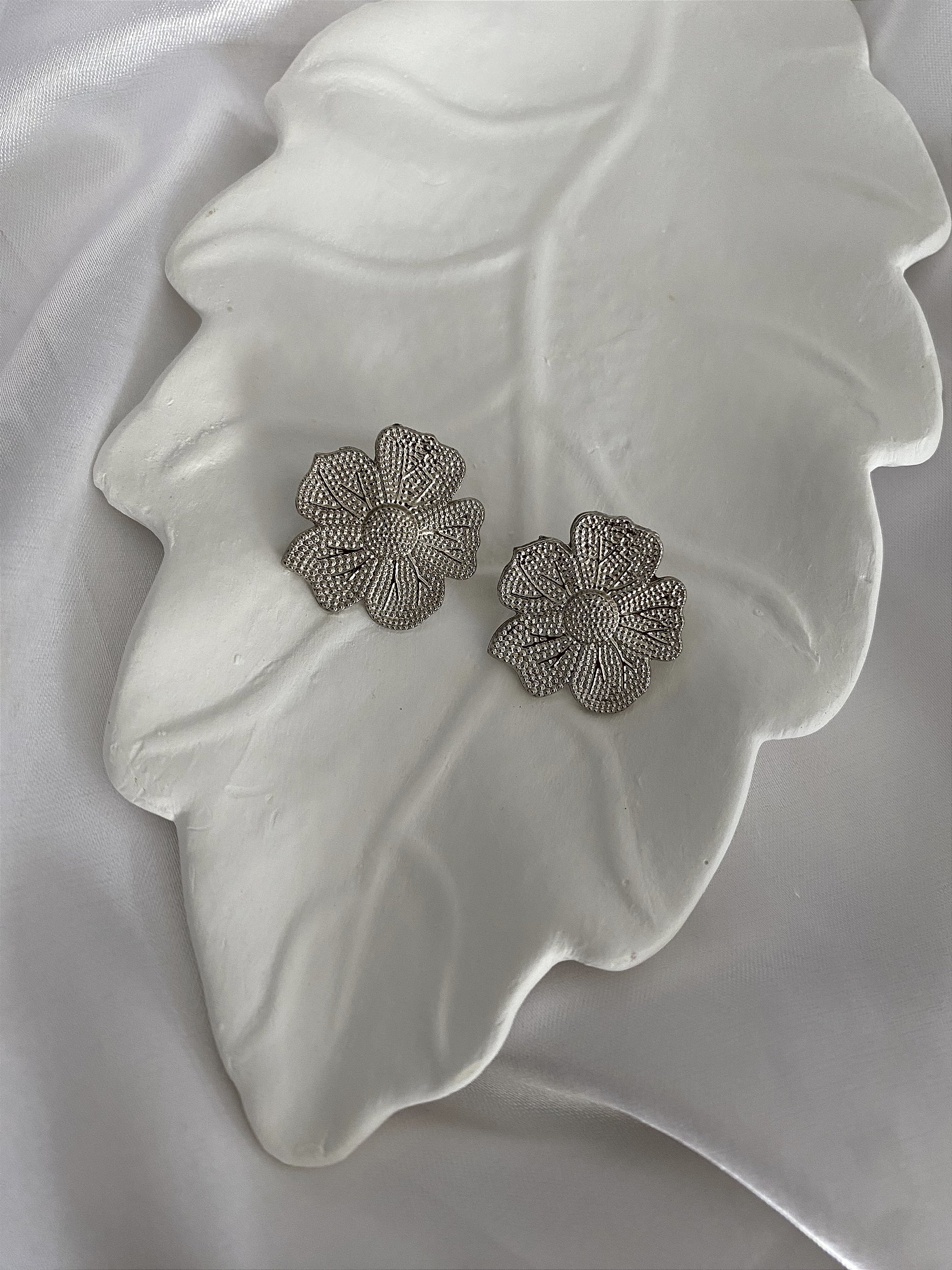 BRINCOS FLOR PRATEADO
