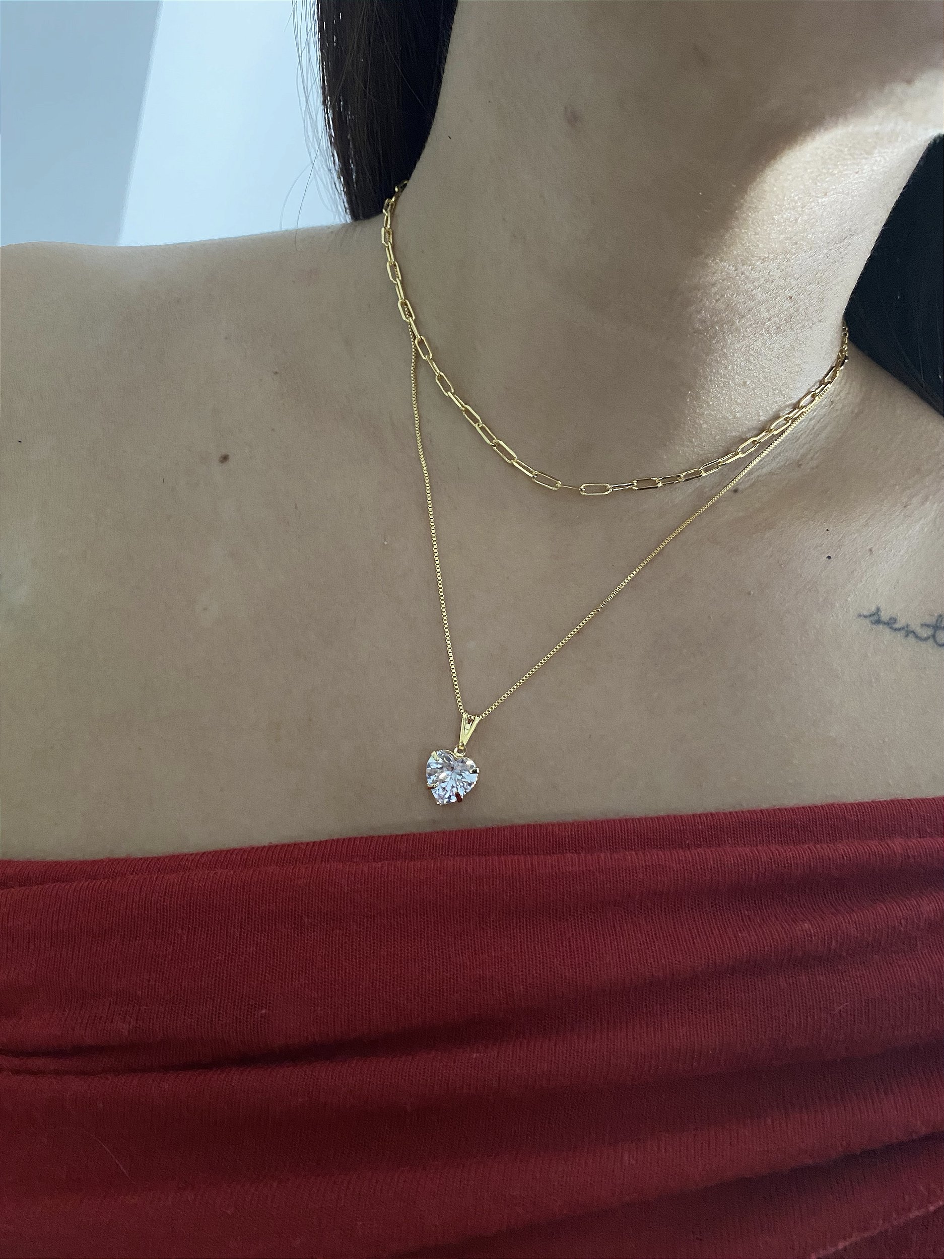 COLAR DUPLO CORRENTE E PONTO DE LUZ CORAÇÃO