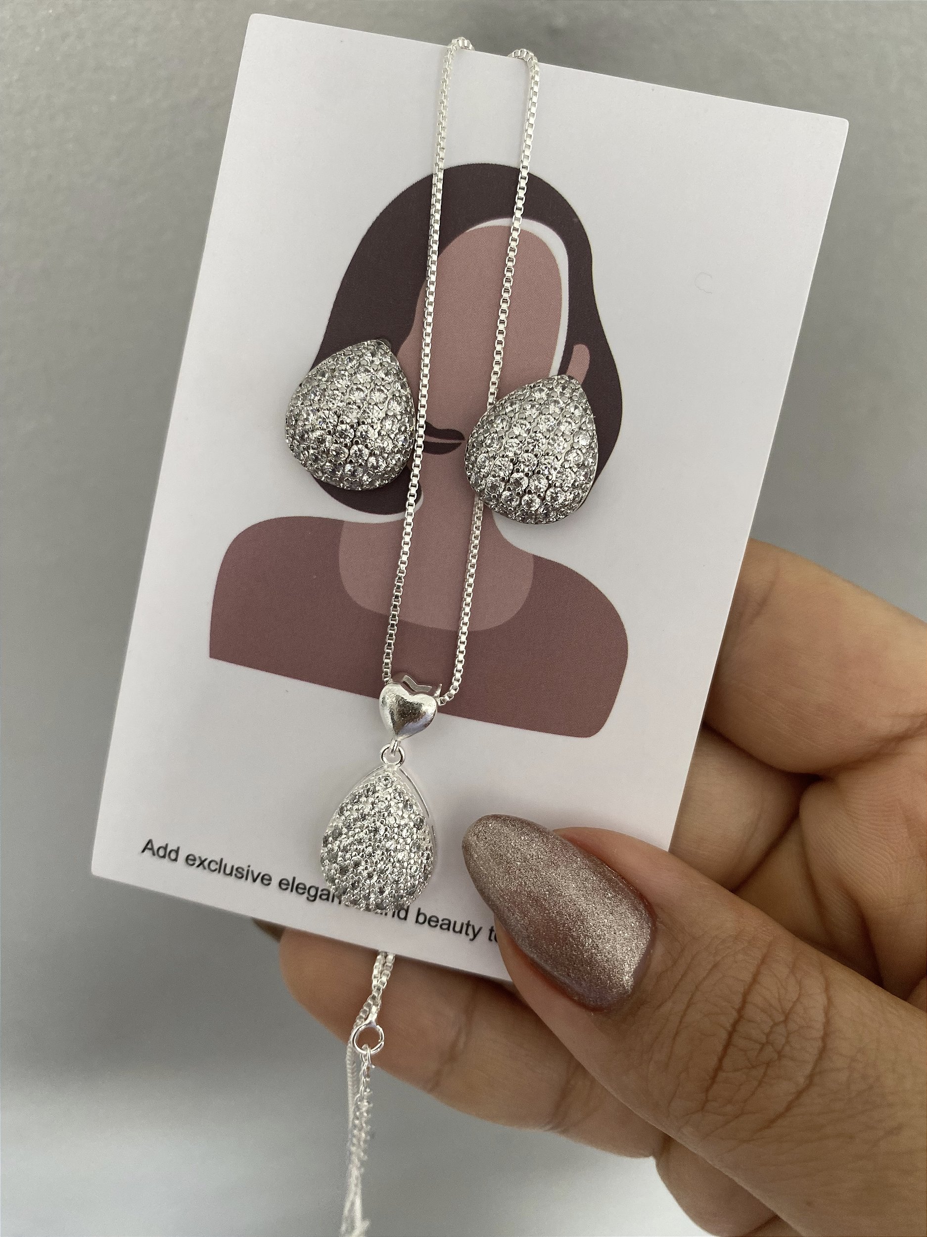 CONJUNTO GOTA COM ZIRCÔNIAS- PRATEADO