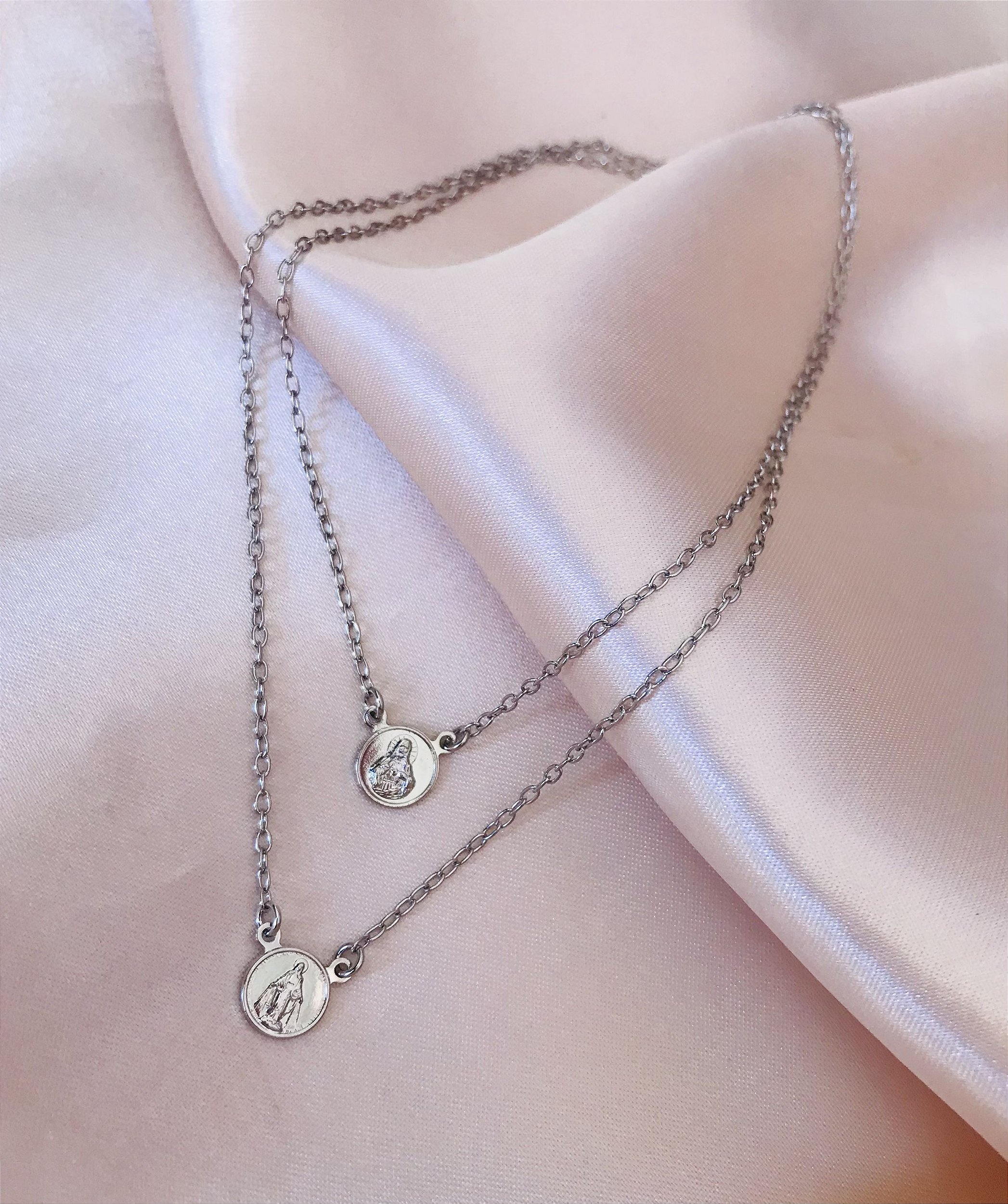 ESCAPULÁRIO PRATA JESUS E NOSSA SENHORA